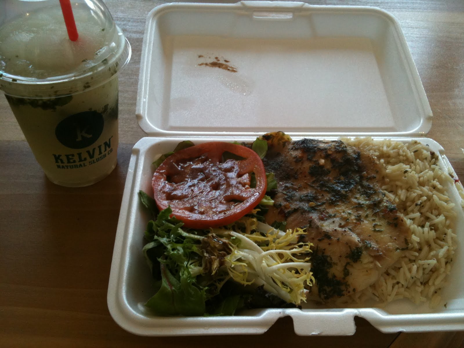 The Bistro Truck serves up delicious Middle Eastern-Moroccan meals for $10 and under, with Daily Specials tweeted every morning. Today, I had Poached fillet if Tilapia in Extra Virgin Olive oil. Served over basmati rice & side of salad. Light and delicious, and oh so yummy. The other dishes I’ve tried on previous days were the Mix Grill (lamb, steak, merguez over basmati rice) and the Marrakech lamb. You won’t be disapppointed. You can read more on my previous review.