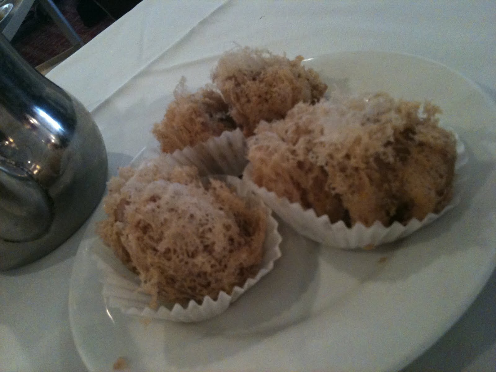 Just like any other dim sum restaurant, various dishes are circulated around in carts. One thing I could not see enough of was the baked barbeque pork buns (pictured, left). Almost every cart had them, so we gave in, and tried them. They were actually pretty good, and not loaded with fat.