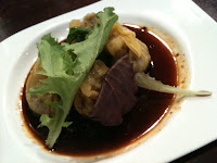I ordered the Thai Steamed Dumplings (chicken and shrimp) in ginger soy sauce as my free appetizer, and those pockets of goodness were so delicious and chock full of ‘stuffing.’