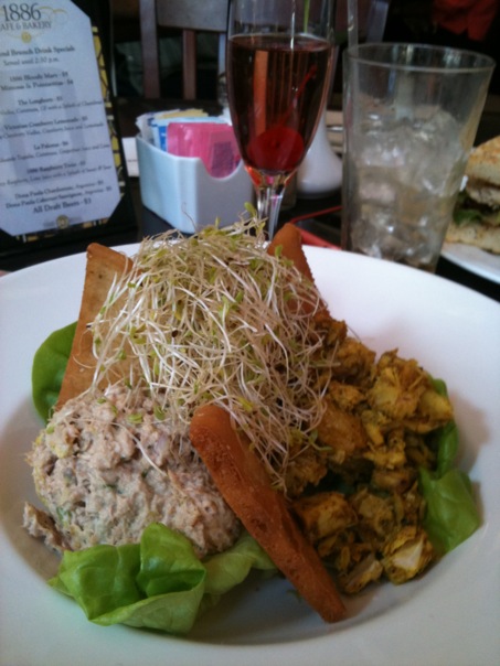 1886 Trio Salad, $12 – curry chicken, tuna and Waldorf. I paired my salad with a Poinsettia (a fine beverage made with rose with a maraschino cherry).