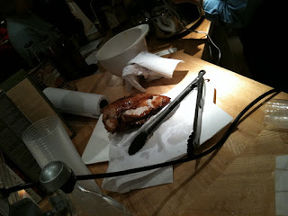Carol and Barbara (our wonderful instructors) had the turkey marinate in an aromatic brine of grapefruit, peppercorns, and other spices. Carol had also told us that they rubbed duck fat on the turkey meat before vacuum-sealing it for the sous vide.