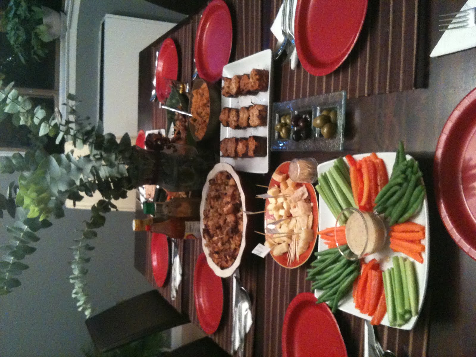 Stuffing with sausage, fennel, and chestnuts Arroz con gandules (Rice w/ pigeon peas) Mac n cheese mini cupcakes Assortment of cheese Provencal olives Crudités |
