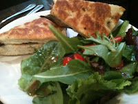 Portobello Mushroom, roasted red peppers, mozzarella on foccacia with mesclun salad