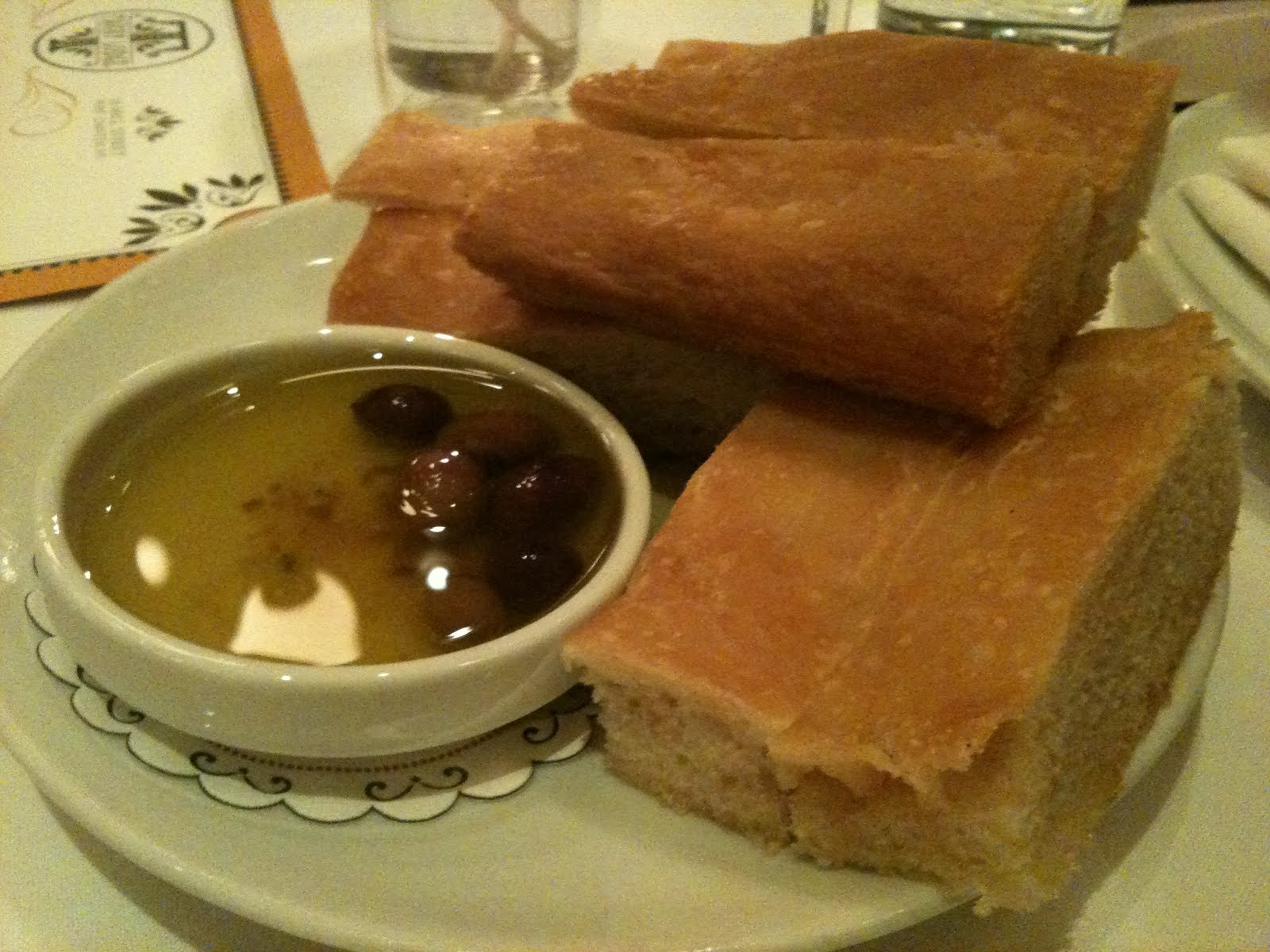 | Homemade bread and olive oil w/ olives |
