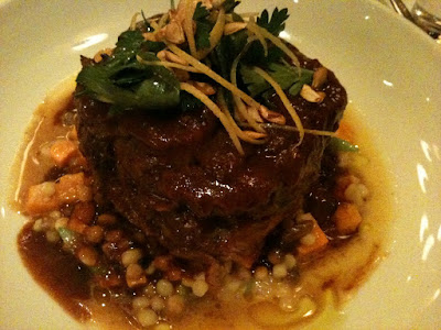 Osso Buco alla Milanese with Pumpkin Fregula, $29, was on the top of my list. I’ve never had it before, and my intentions were to try something I’ve never had before. I figured the Batali/Bastianich team wouldn’t let me down. I was thinking of it, the moment the menu was handed to me – veal shanks braised with vegetables, white wine and broth.