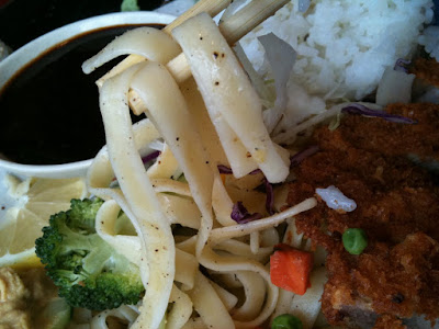 The tonkatsu is breaded and fried pork, served with katsu sauce and white rice. The tonkatsu was good, nothing different from any other tonkatsu that I’ve ordered at other places. I’ve actually had better elsewhere, and for less than what they charged – $9.95. I was intrigued by the noodles and vegetables that was also on my plate. The noodles resembled linguine, and was dressed with light oil and black pepper. I’m not sure why they even bothered to serve this with my meal. Maybe some udon or soba would be a better substitute.