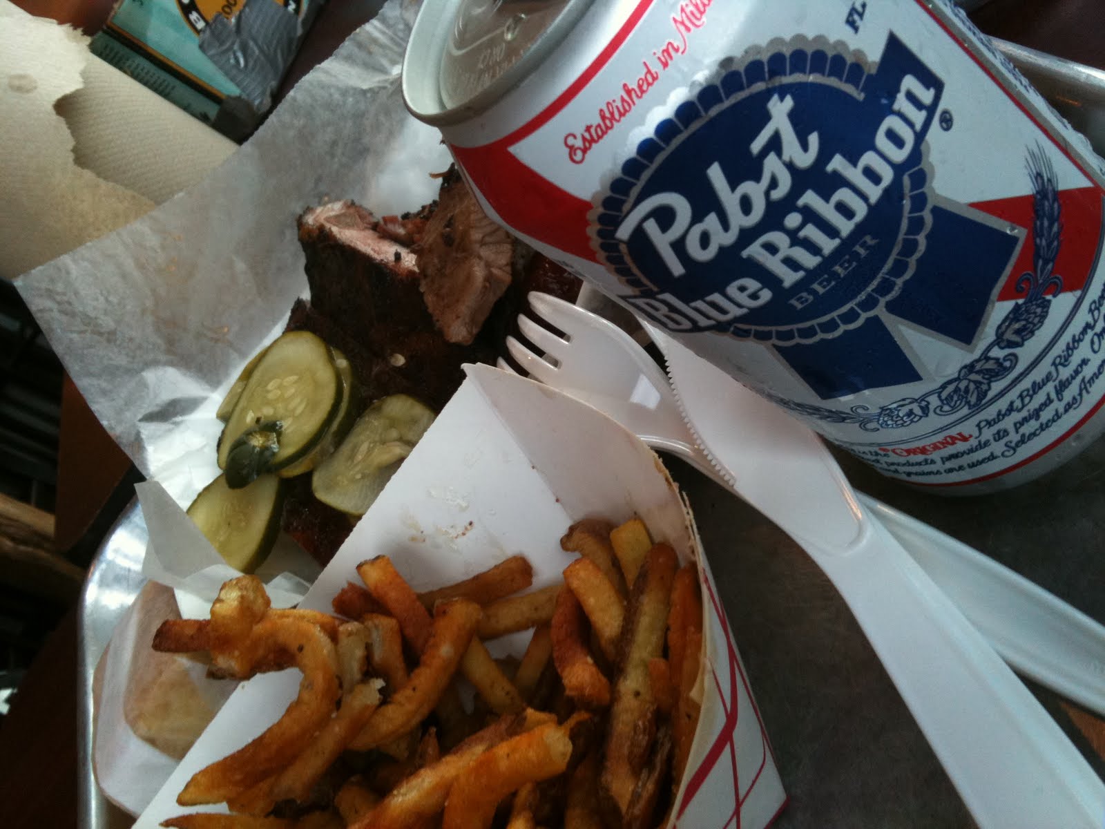 Wilson’s is a small restaurant with some picnic tables outside and a few tables inside. Like any other barbeque joint, you can get ribs, brisket, pulled pork, smoked chicken, and, of course, the usual fixins. The barbecue here is good, not great. I guess I’ve been spoiled by the delicious barbeque at Blue Smoke and Hill Country in NYC.