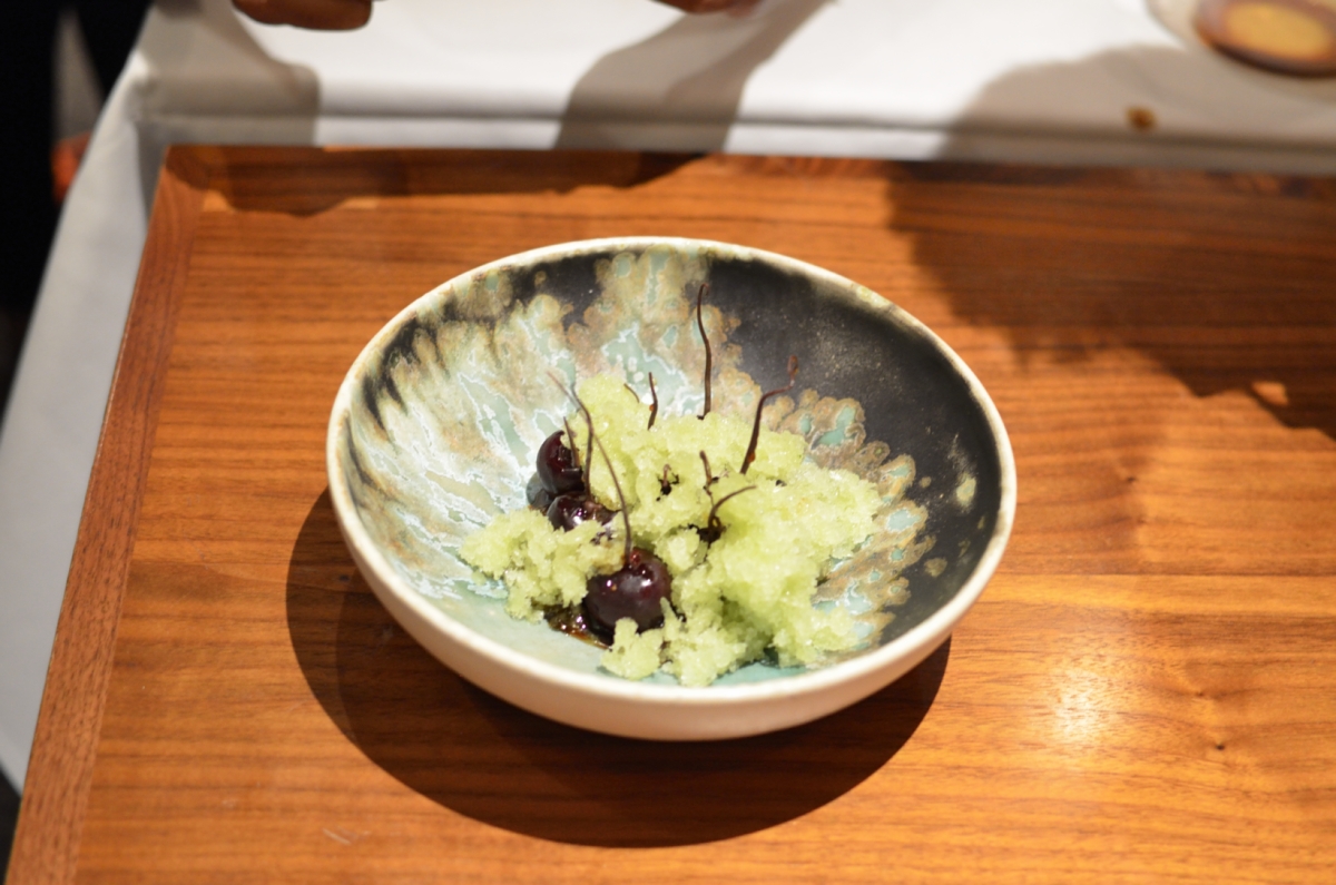 | Overripe cherries with wheatgrass Presented by Mads Refslund (Copenhagen) |