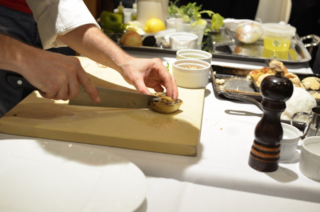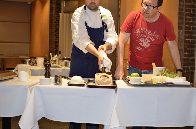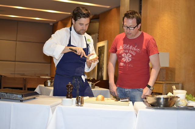 Fraser demonstrated cooking a dish that is only served to VIPs at his restaurant: Salt Baked Onion. Sounds ordinary, but Fraser layers his onion with truffles from Provence. Since he serves this all year round, he uses different truffles based on the seasons, which has different tastes. The summer truffle is cheaper (about $180/lb), has no strong flavor or perfume. During the winter, truffles can go for $900/lb. Fraser says “Truffle is used to garnish the onion in the winter, and vice versa for summer.”