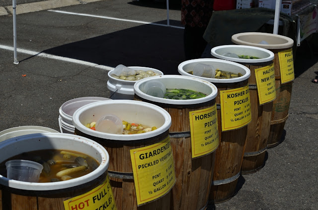 My favorite treats are the market were the pickles and olives from a vendor from New Jersey. What caught my eye was a barrel of Horseradish pickles, which I’ve never tried before. Not as spicy as I thought it would be, I wound up buying a pint for $5 (and I’m snacking on them now). If you’re not a fan of horseradish, they’ve got the usual pickle varieties: Kosher dill, half sour, full sour, and hot pickles, as well as their own Giardiniere. Aside from pickles, they sell a variety of olives, sundried tomatoes and olive oil. The kalamata olives are excellent.