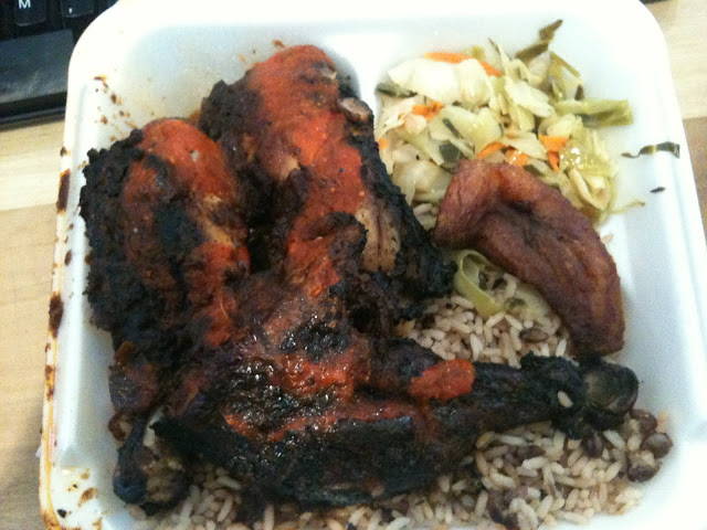 My colleagues and I had to check it out the day they announced they were in the Flatiron District. We all ordered the Jerk Chicken, which, like other dishes, comes in a mini meal and large plate. Knowing how big servings are at Jamaican restaurants, I played it safe and got a Jerk Chicken mini meal consisting of 2 pieces of chicken with rice and peas, vegetables, and a fried plantain – all for $6.50. I’m glad I did, because it was more than enough for lunch.