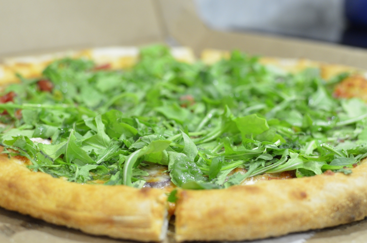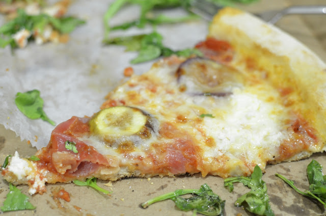 | What’s underneath the layer of arugula – ricotta cheese and slices of fig and prosciutto |