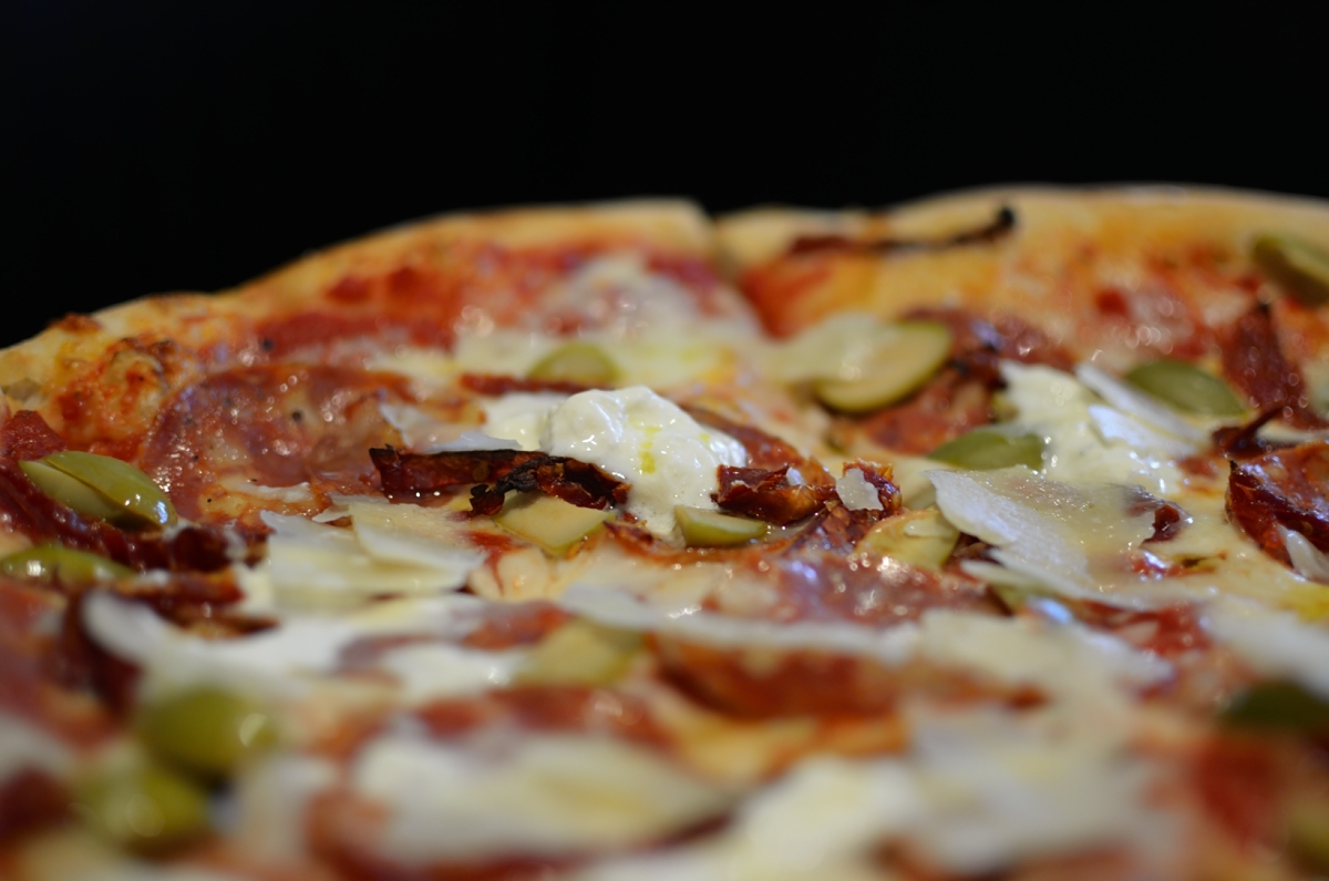 NYC pizza sauce, tree ripened green olive, sundried tomatoes, salami picante, mozzarella, burrata,