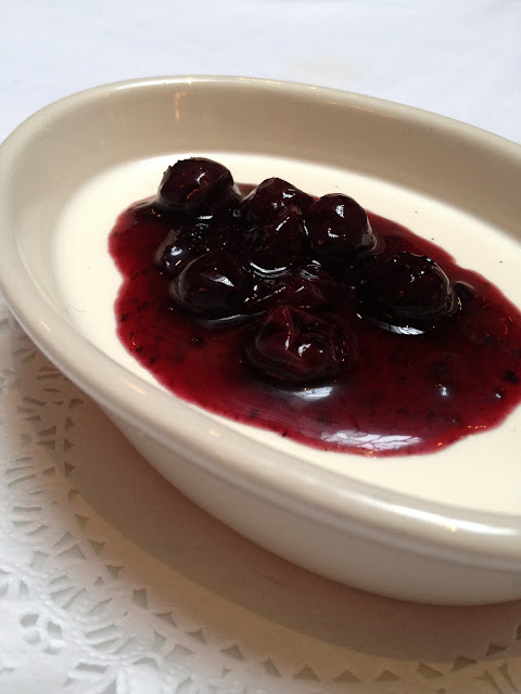 The Panna Cotta was smooth and creamy with wonderful hints of vanilla (and you can see the vanilla in each spoonful). The blueberry compote was a nice touch with each blueberry popping with flavor.