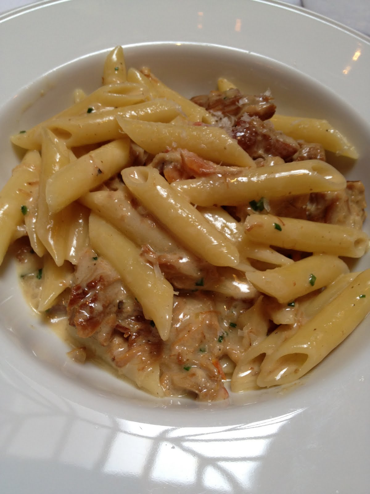 Off the Lunch Market Menu, I tried the Crespelle and Penne as my savory dishes, and the Panna Cotta as the sweet dish. Crespelle are two savory crepes filled with ricotta spinach, zucchini and swiss chard that are absolutely delicious, and light. The penne was perfectly cooked – al dente with a delicious ragu sauce made with braised veal, proscuitto, and smoked pecorino.