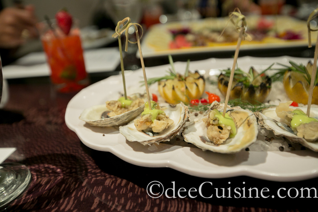 Fried Blue Point oysters with citrus wasabi aioli and grilled lemon